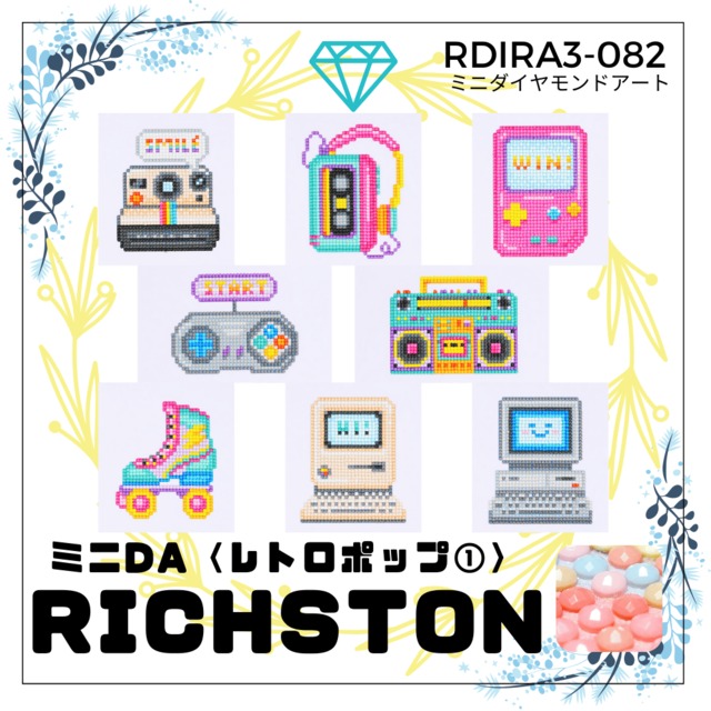 ミニダイヤモンドアート〈レトロポップ①〉 (全8柄) ラウンドビーズ 国内送料無料 RDIRA3-082【RICHSTON】