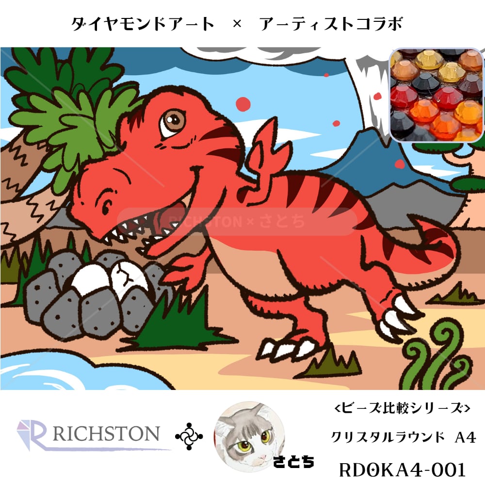ダイヤモンドアート『アーティスト』コラボ ビーズ比較シリーズ 【ティラノサウルス】 RICHSTON×さとち A4サイズ クリスタルラウンドビーズ RDOKA4-001