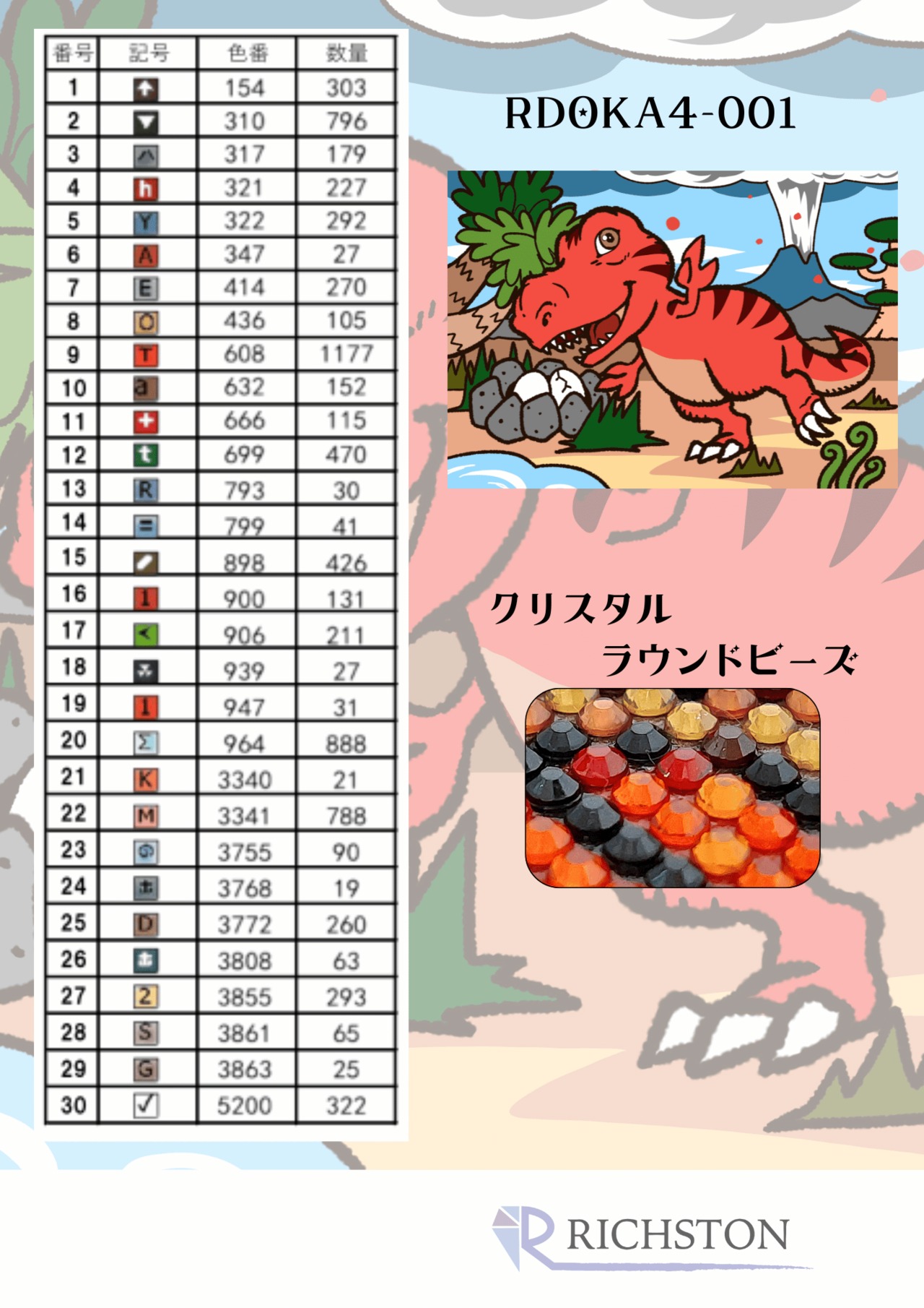 ダイヤモンドアート『アーティスト』コラボ ビーズ比較シリーズ RICHSTON×さとち A4サイズ 恐竜3点セット TDOXA4-001