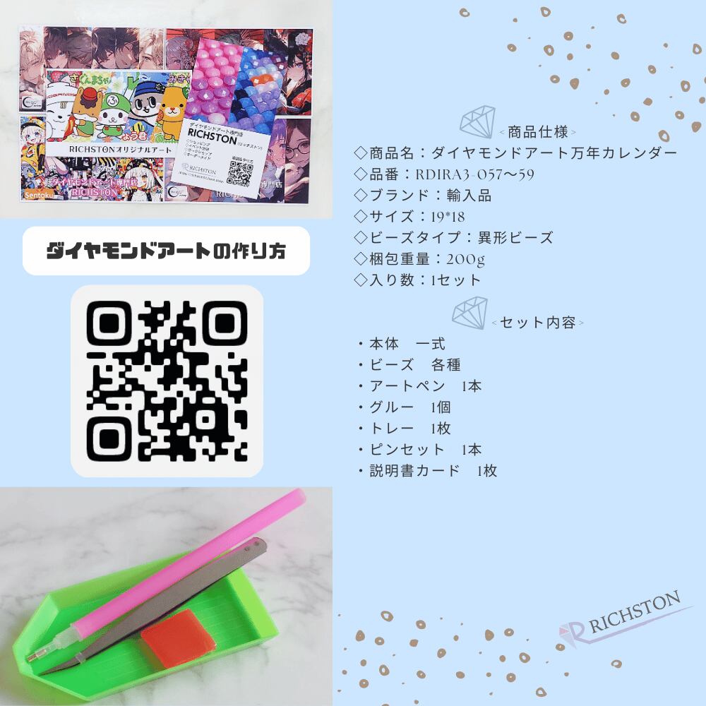 ダイヤモンドアート 万年カレンダー(全3種) 国内送料無料 RDIA57~59 【RICHSTON】
