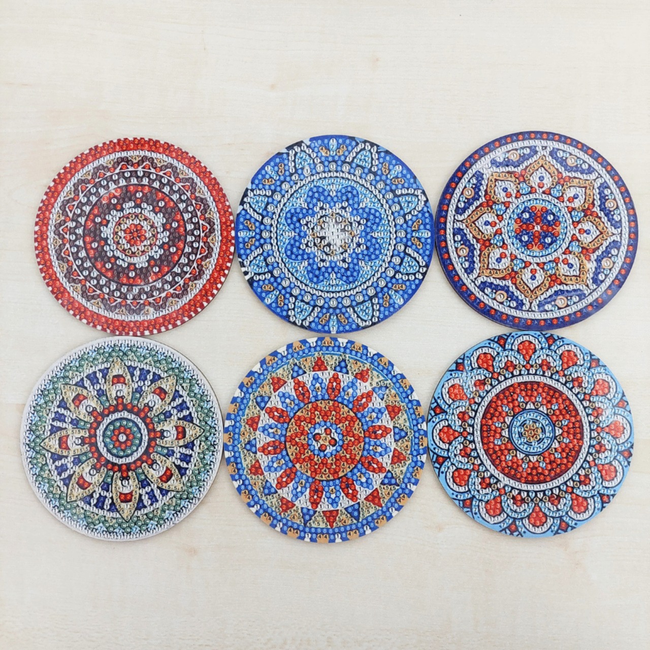 この商品は、食卓を彩るダイヤやモンドアートでできたコースターです。全6枚のコースターは、曼荼羅をテーマに全て違うデザインになっています。作って楽しい、使って嬉しい、飾って美しい商品になります。