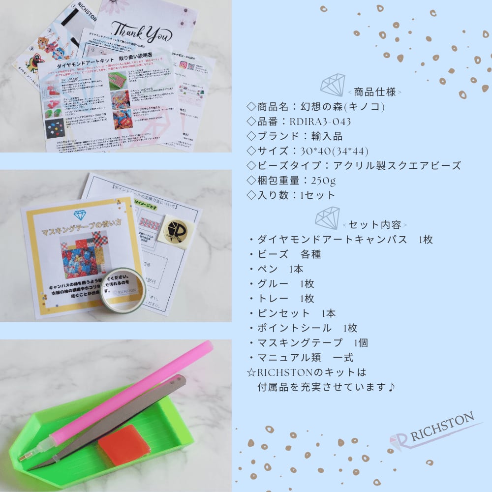 ダイヤモンドアート 『幻想の森(キノコ)』 40cmx50cm(外寸45x55) アクリル製スクエアビーズ 選べる発送オプション RDIRA2-043 【RICHSTON】