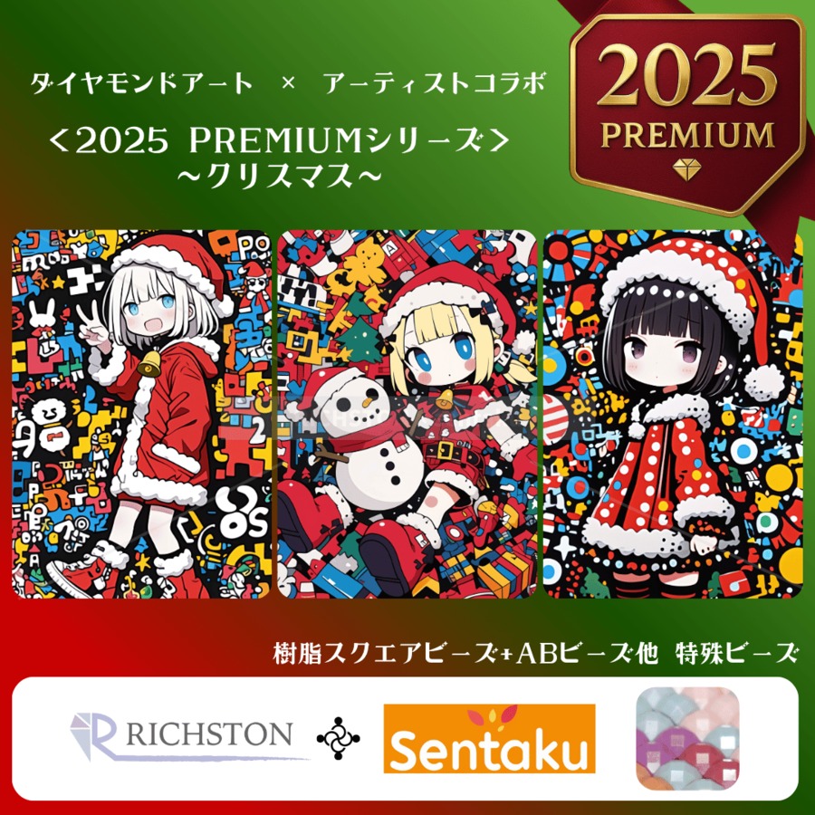 【シリーズ説明カタログ】 <2025 PREMIUMシリーズ> ~クリスマス~ ダイヤモンドアート『アーティスト』コラボシリーズ RICHSTON×sentaku(せんたく) A2サイズ 樹脂スクエアビーズ+ABビーズ他 特殊ビーズ