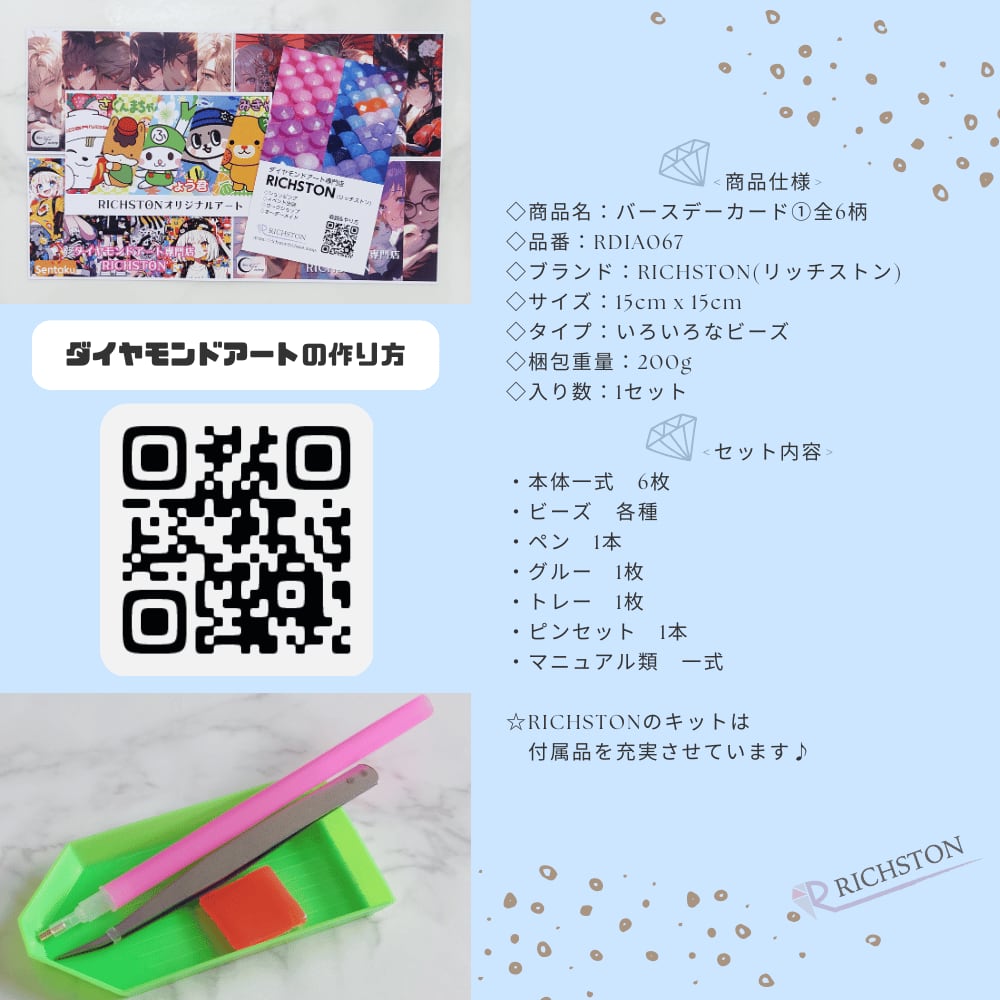 ダイヤモンドアート〈バースデーカード①〉 (全6種類) いろいろなビーズ 国内送料無料 RDIA067【RICHSTON】