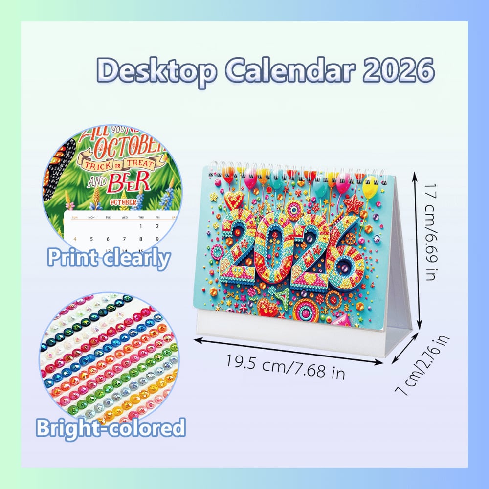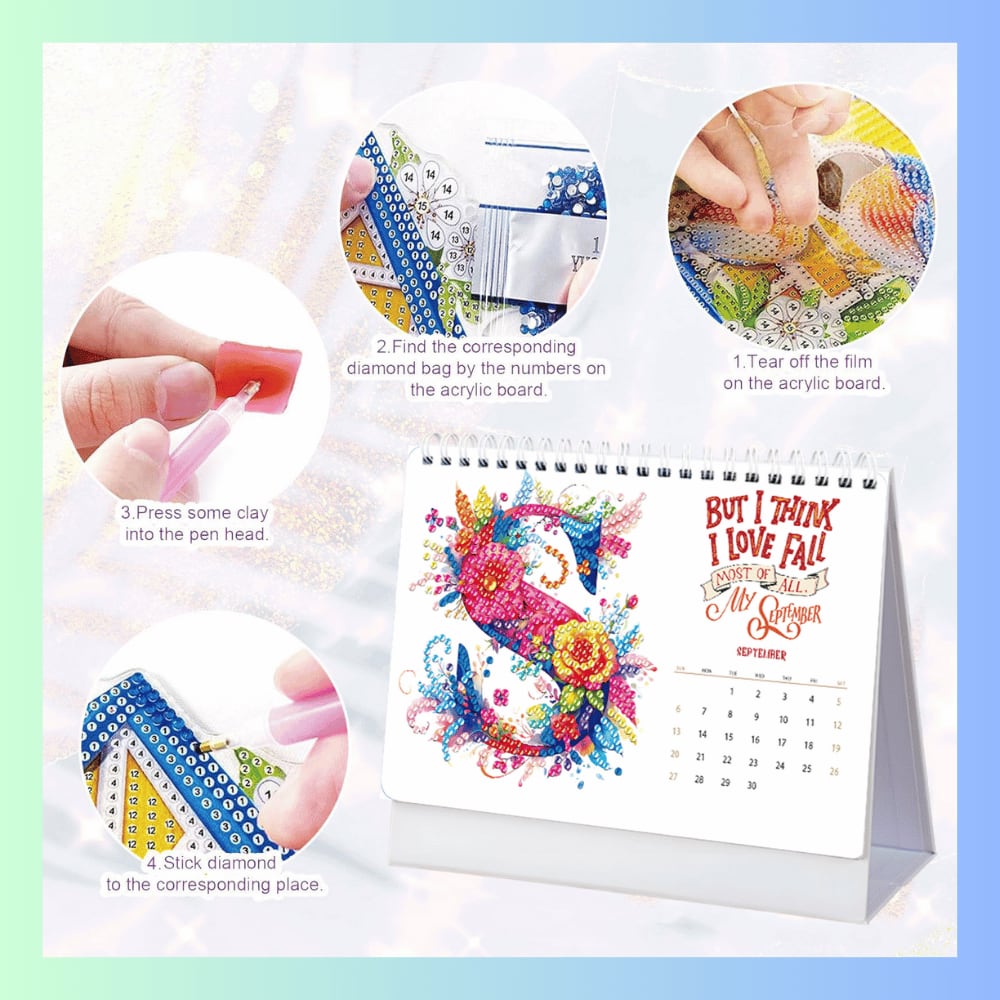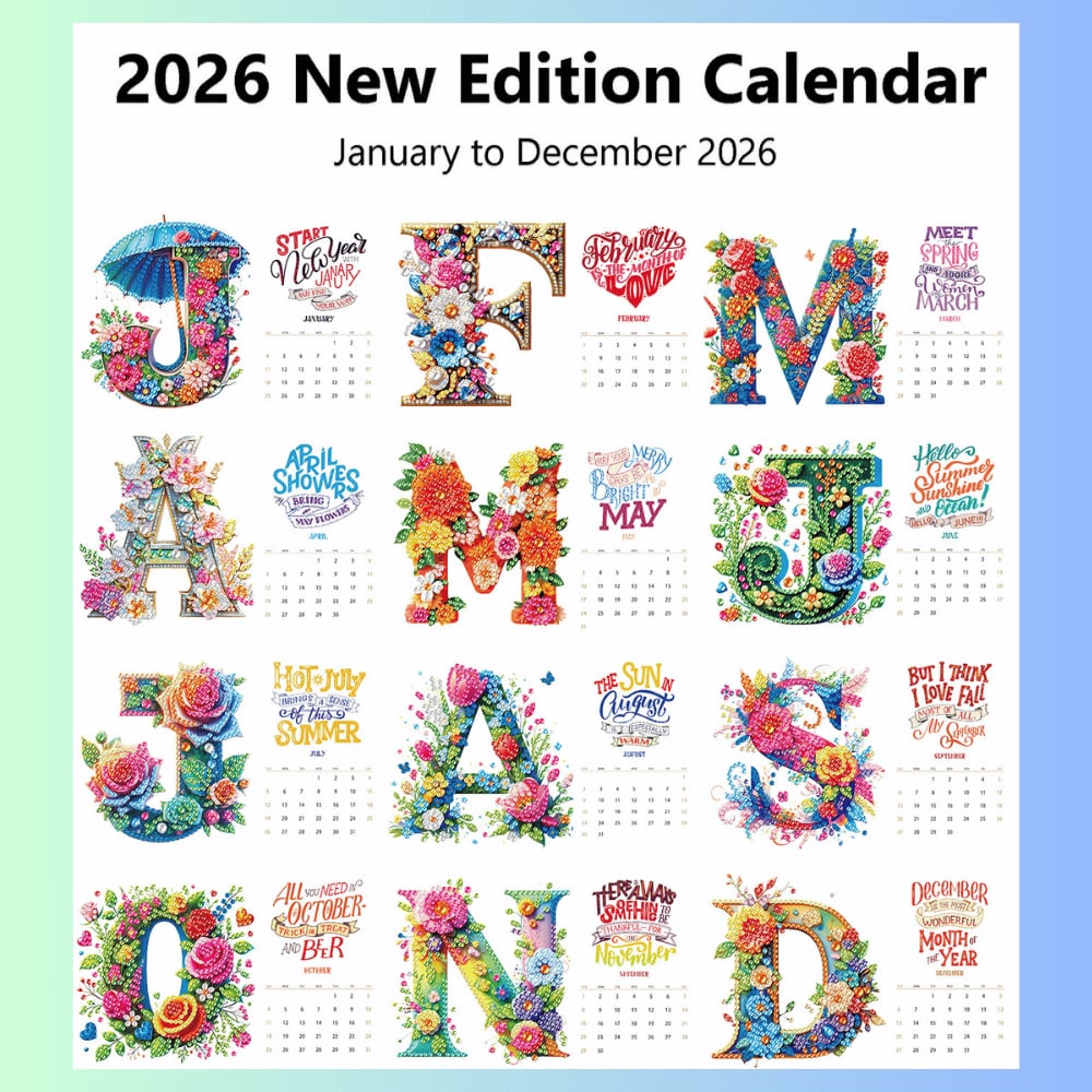 色鮮やかな花柄デザインが毎月楽しめる、2026年専用のダイヤモンドアート卓上カレンダーです。