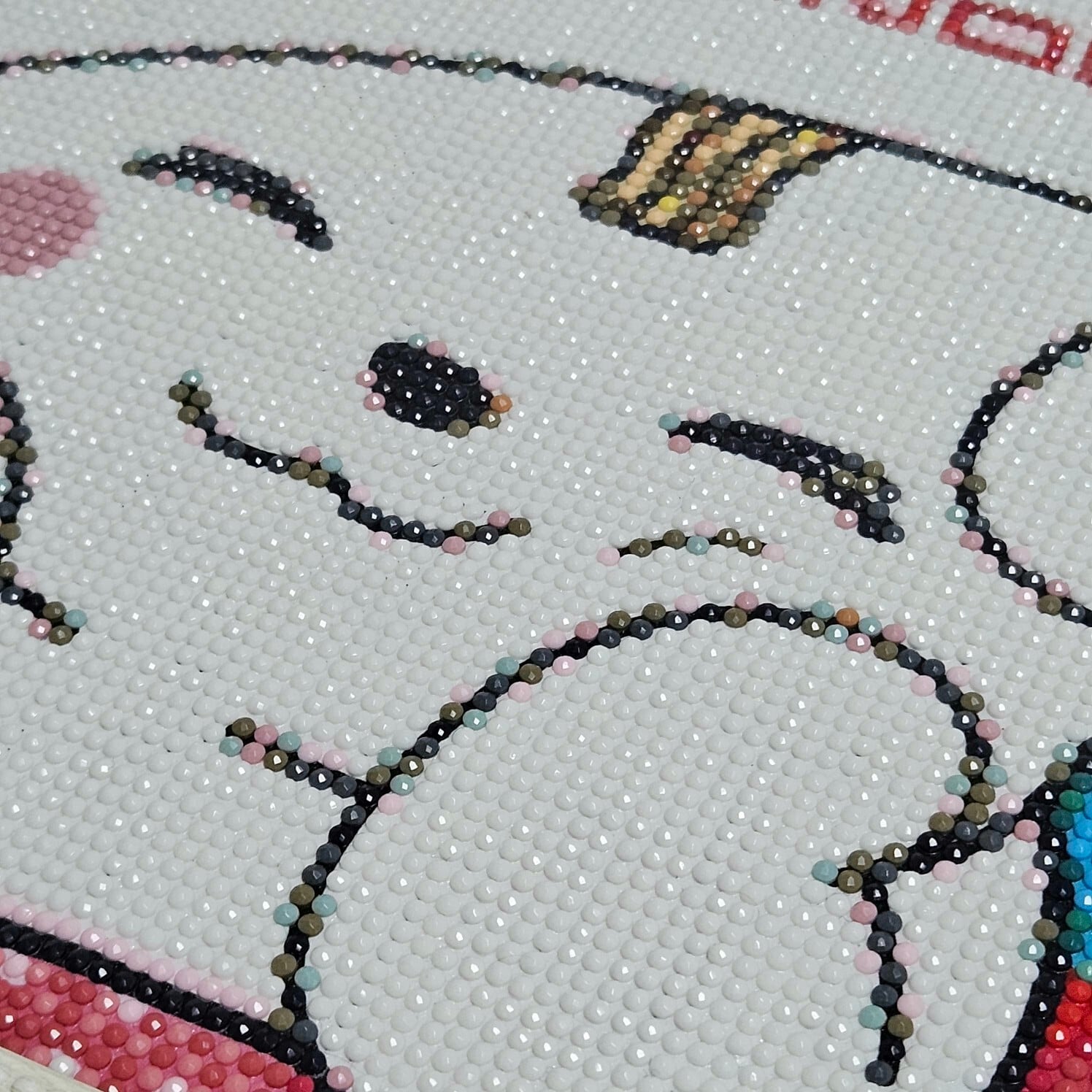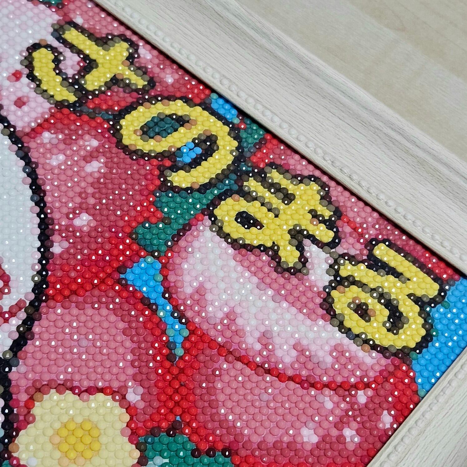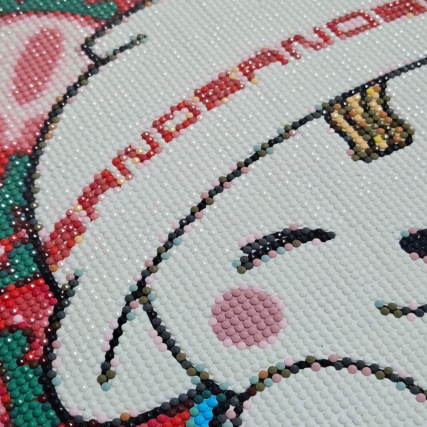 ビーズの色は、さのまるの魅力を引き立てるカラフルな組み合わせ。細部まで丁寧に作られたダイヤモンドアートは、見るだけでも心が和みます。