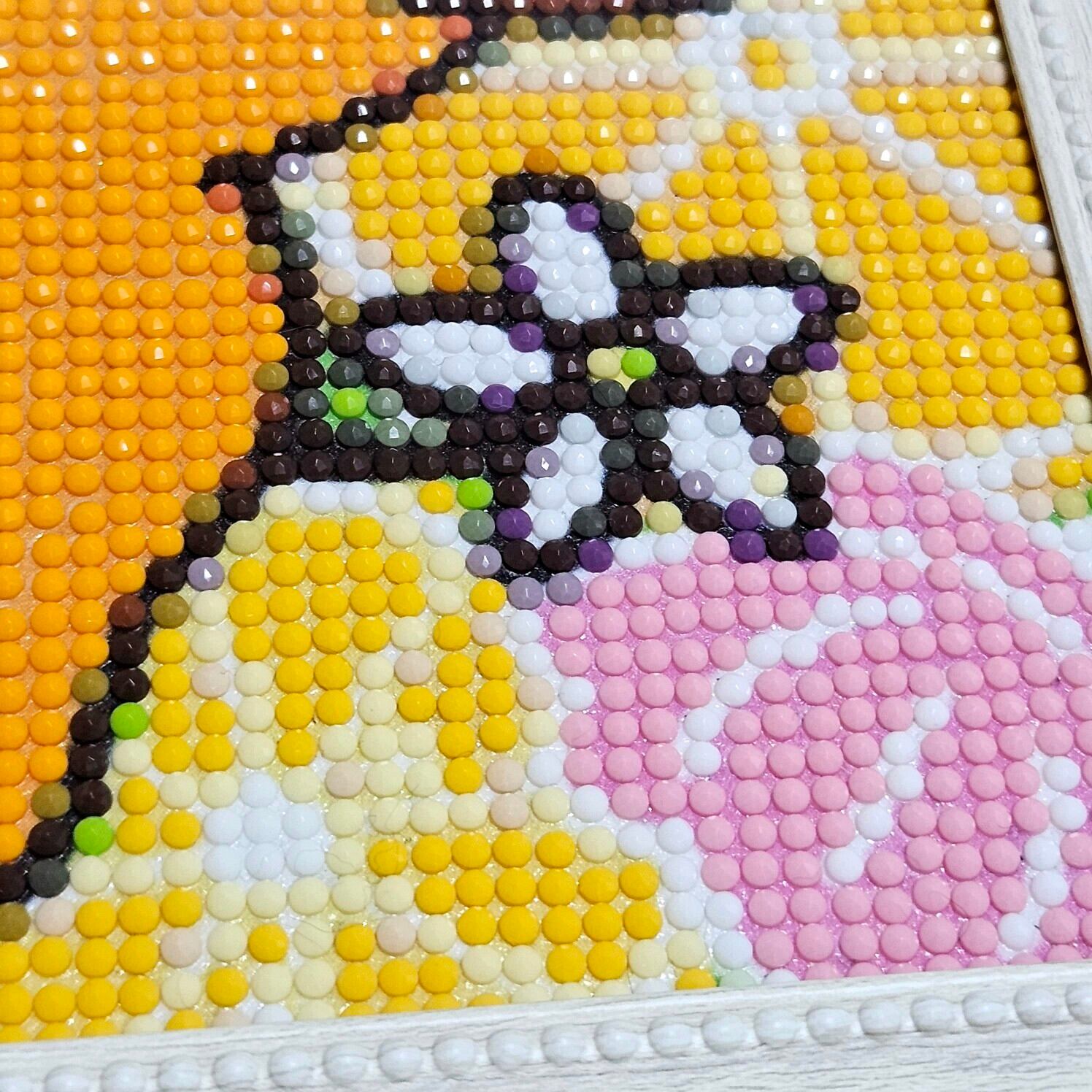 キャラのかわいさを表現するために選ばれたカラフルな色合いのビーズたちには、大人も子供もダイヤモンドアートの魅力に引き込まれること間違いなし!時間を忘れて集中して作品づくりを楽しむことができます。