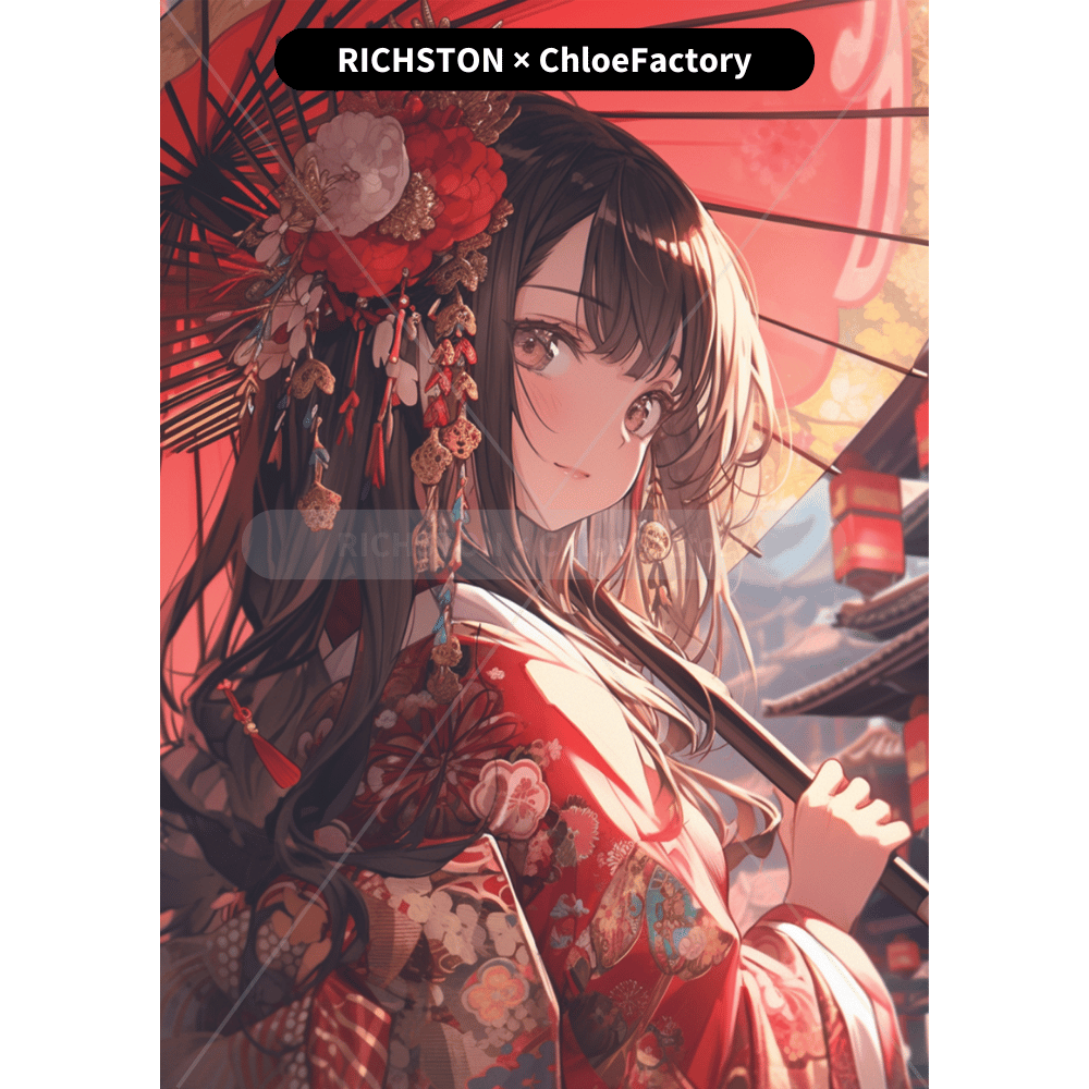 イラストレーターとのコラボ作品がついにダイヤモンドアートで登場しました!どの作品も一度見たら忘れられない美しさ。着物の表現も見事です。