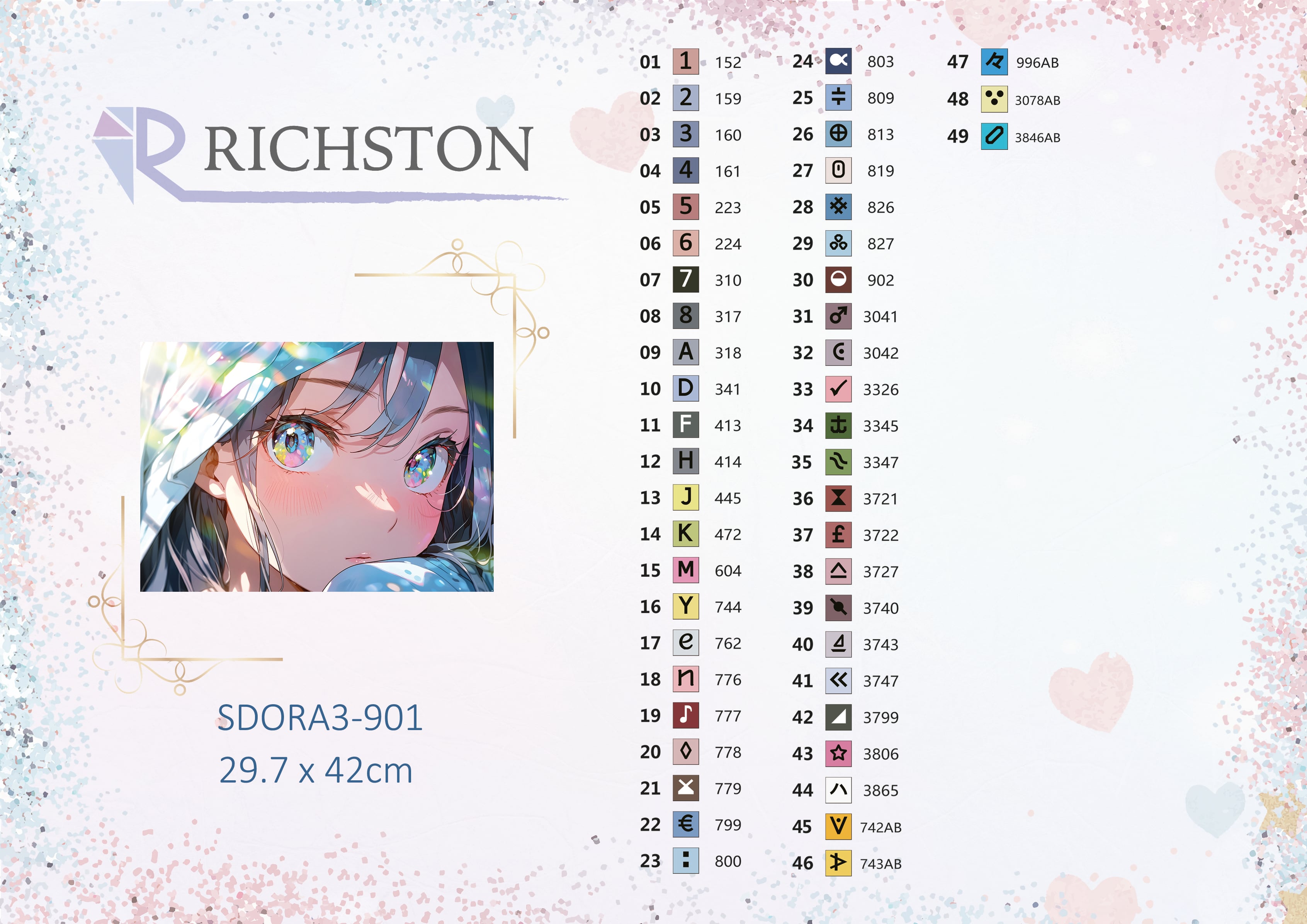 ダイヤモンドアート <2025 PREMIUMシリーズ> 『アーティスト』コラボ ビーズ比較シリーズ RICHSTON×クロエファクトリー A3サイズ ラウンドビーズ 選べる発送オプション SDORA3-901