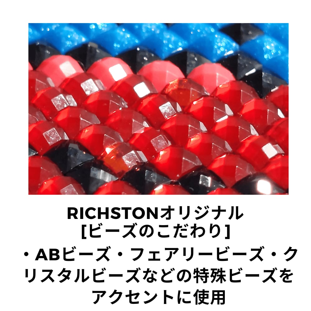 また、通常ビーズに加え ABビーズ他 特殊ビーズを使用。きらめきや奥行き感がプラスされ、完成品はより豪華で特別な印象に。