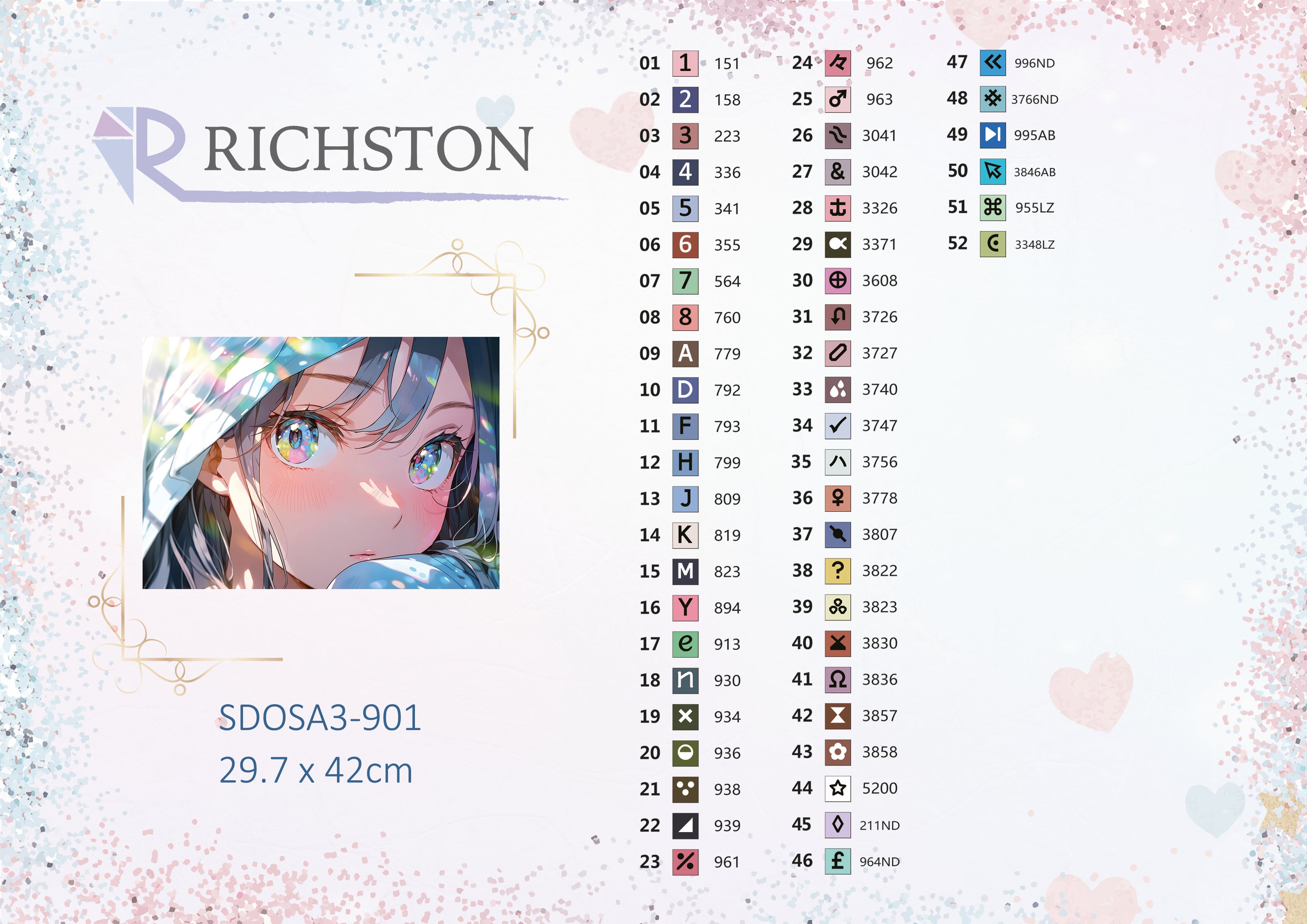ダイヤモンドアート <2025 PREMIUMシリーズ> 『アーティスト』コラボ ビーズ比較シリーズ RICHSTON×クロエファクトリー A3サイズ スクエアビーズ 選べる発送オプション SDOSA3-901