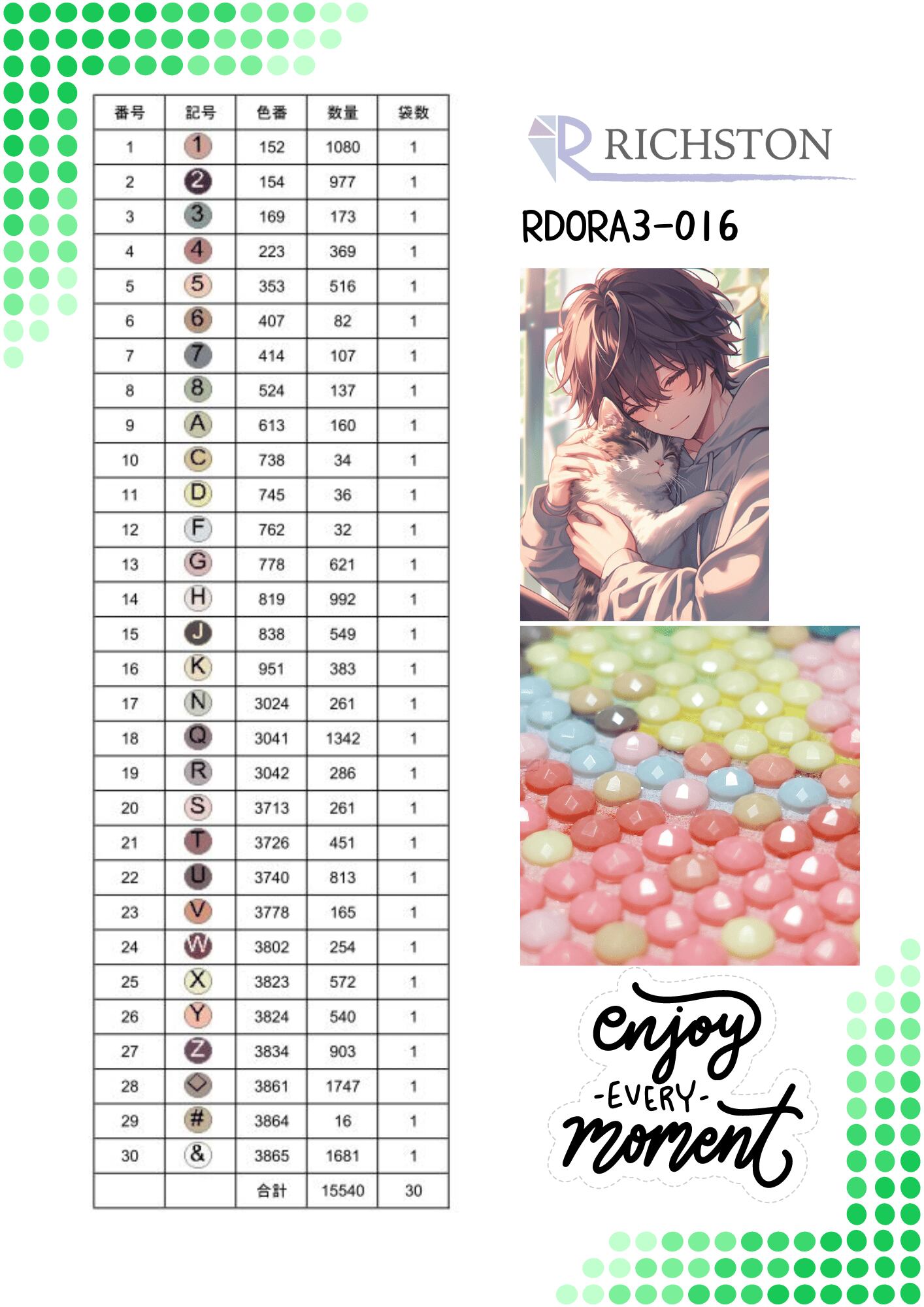 ダイヤモンドアート『アーティスト』コラボシリーズ 猫&イケメン RICHSTON×クロエファクトリー A3サイズ ラウンドビーズ 選べる発送オプション RDORA3-016