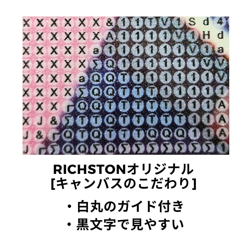 このダイヤモンドアートはA3サイズです。お手頃なサイズの中に、クロエファクトリーが生み出す数々のキャラクターたちの表現を収めました。ダイヤモンドアートやRICHSTONの作品を始めてチャレンジする方や、色々な作品をどんどん作っていきたい方など、気軽に楽しんでいただけるサイズ感になっています。