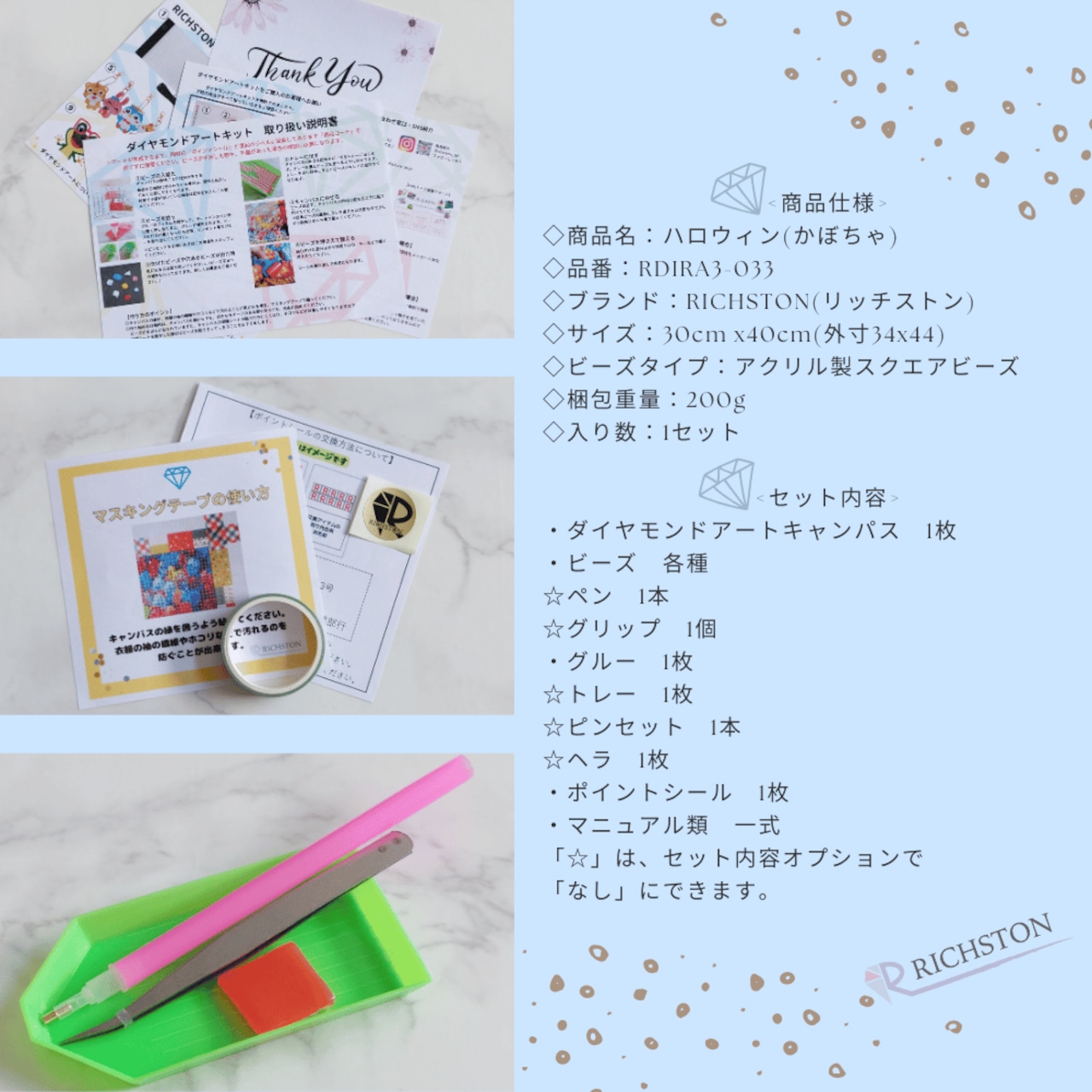 ダイヤモンドアート 『ハロウィン(かぼちゃ)』 30cm x40cm(外寸34x44) アクリル製スクエアビーズ 選べる発送オプション RDIRA3-033 【RICHSTON】